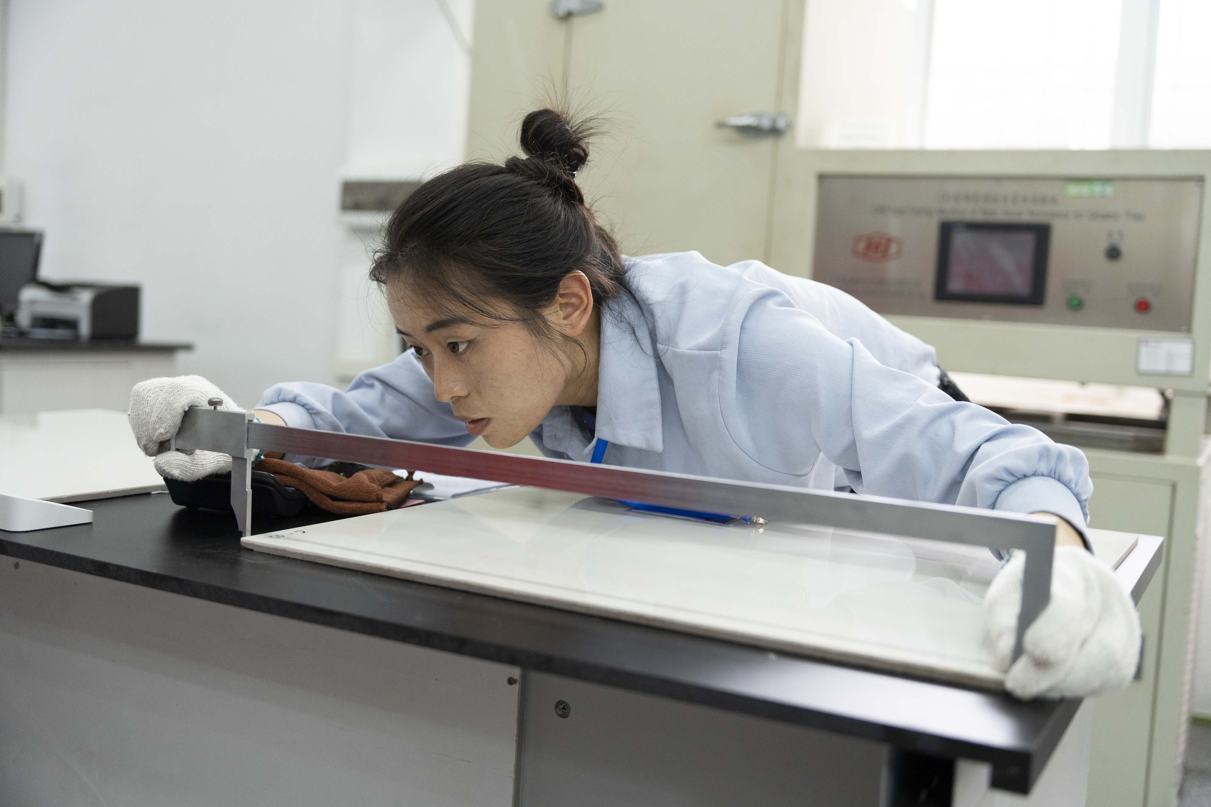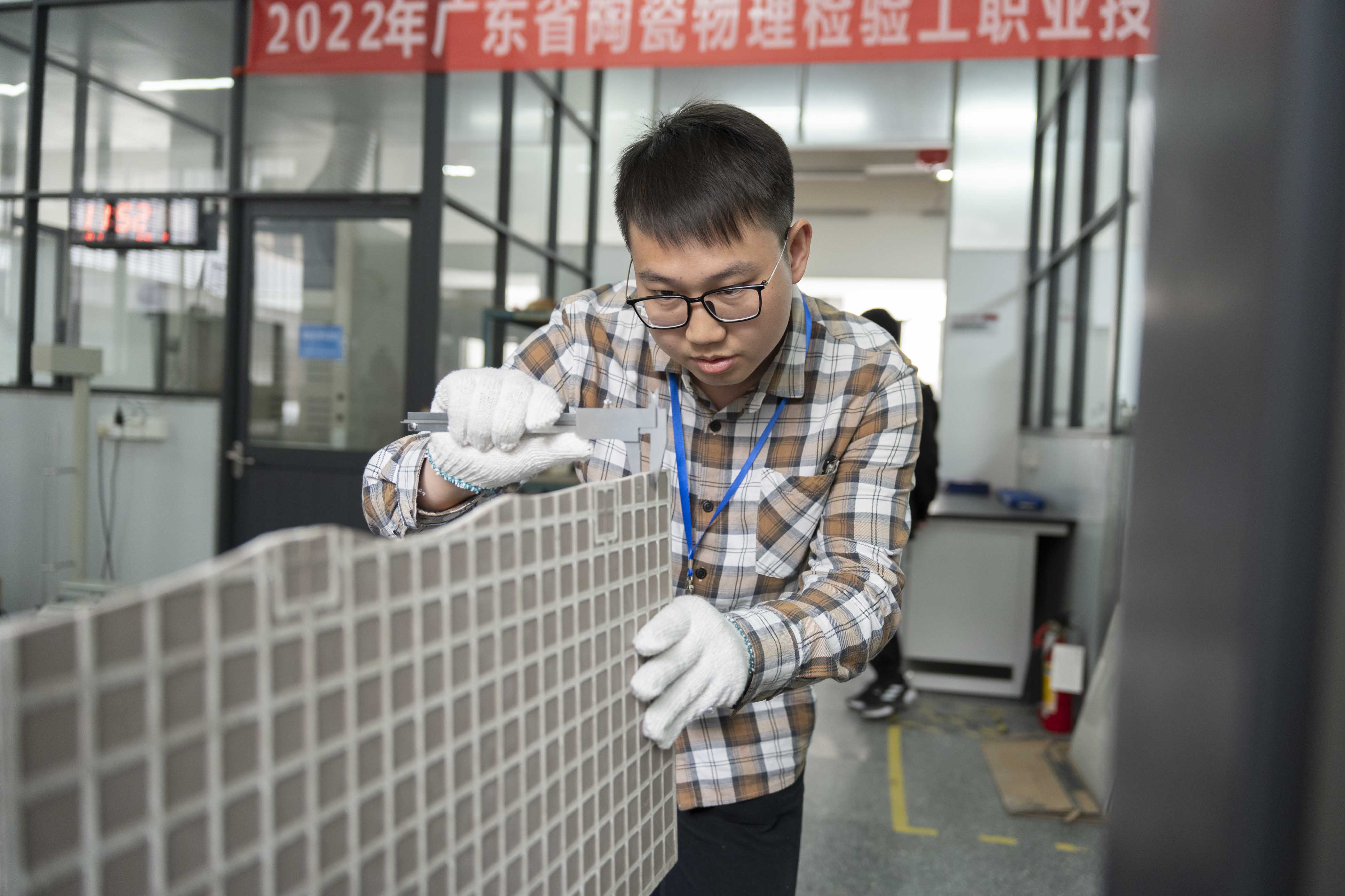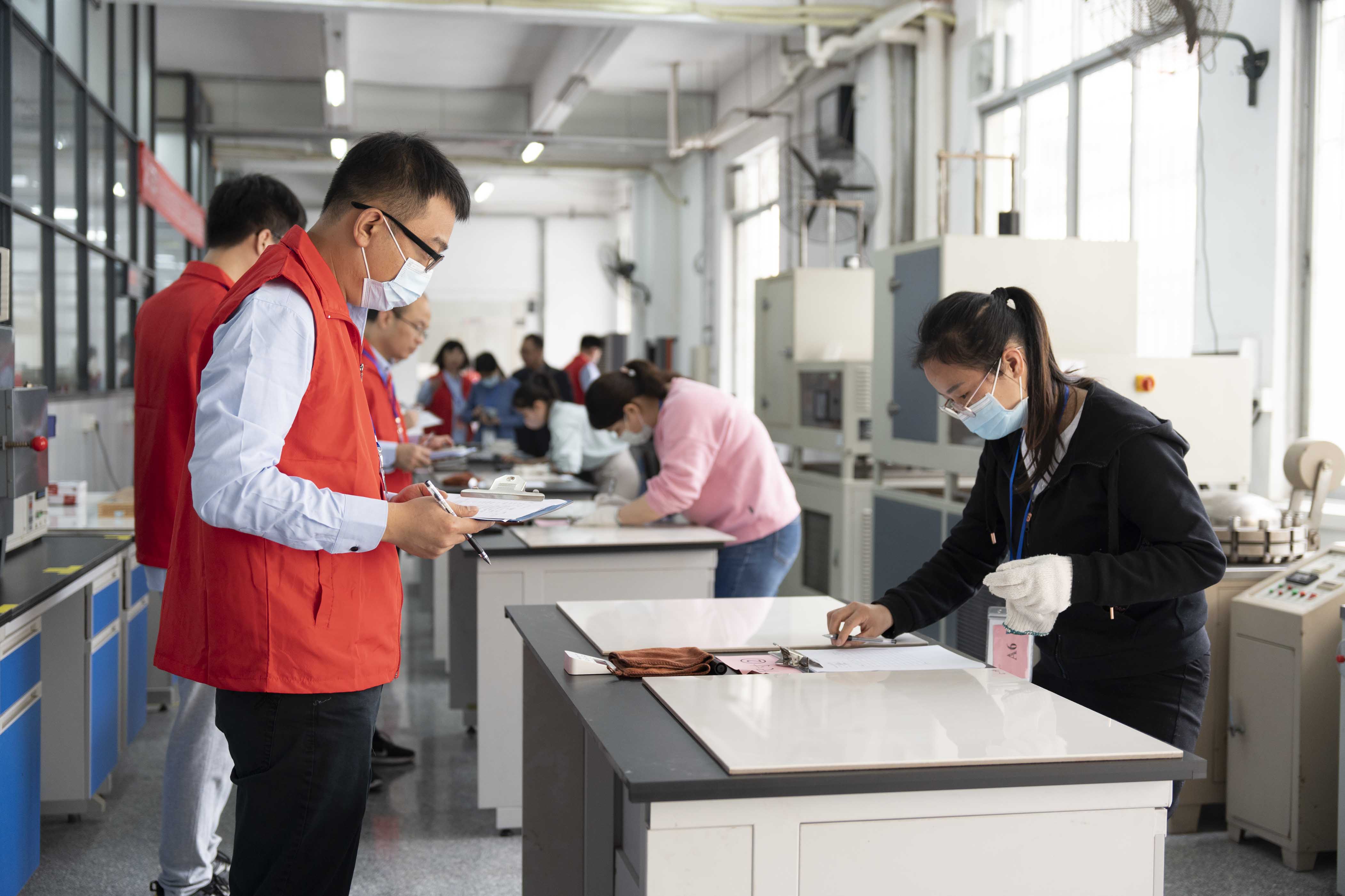 據(jù)了解,這是廣東陶瓷協(xié)會第四次舉辦“陶瓷物理檢驗(yàn)工”省級大賽,引起了社會各界及行業(yè)人士的廣泛關(guān)注和熱烈反響,來自馬可波羅控股、東鵬控股、新明珠(廣東)新材料、蒙娜麗莎集團(tuán)、廣東省建材研究院、金牌陶瓷、肇慶樂華、佛山東鵬陶瓷、家美陶瓷、石灣鷹牌陶瓷、三水金意陶、佛山鷹牌科技、昊晟陶瓷、華夏建筑陶瓷研發(fā)中心等14家單位的34位選手參加角逐,吸引了行業(yè)內(nèi)外眾多研發(fā)、生產(chǎn)、營銷、應(yīng)用企業(yè)及用戶、消費(fèi)者的觀摩、關(guān)注。競賽采用理論知識與操作技能相結(jié)合的形式舉辦,以陶瓷磚產(chǎn)品物理性能檢測要求進(jìn)行。為適應(yīng)新時(shí)期陶瓷行業(yè)高質(zhì)量發(fā)展的新要求,本次比賽理論考試增加廣東陶瓷協(xié)會T/GDTC002—2021《陶瓷巖板》團(tuán)體標(biāo)準(zhǔn)中陶瓷巖板方面的新知識內(nèi)容,使技術(shù)工人通過競賽實(shí)現(xiàn)繼續(xù)教育和知識更新。
