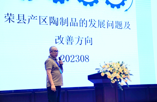 朗朗科技(北京)有限公司董事長吳江龍分享了題為《榮縣產(chǎn)區(qū)陶制品的發(fā)展問題及改善方向》的報告。