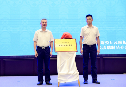 中國建筑衛(wèi)生陶瓷協(xié)會會長繆斌和榮縣人民政府縣長趙磊共同為“中國(西部)陶都”揭牌。